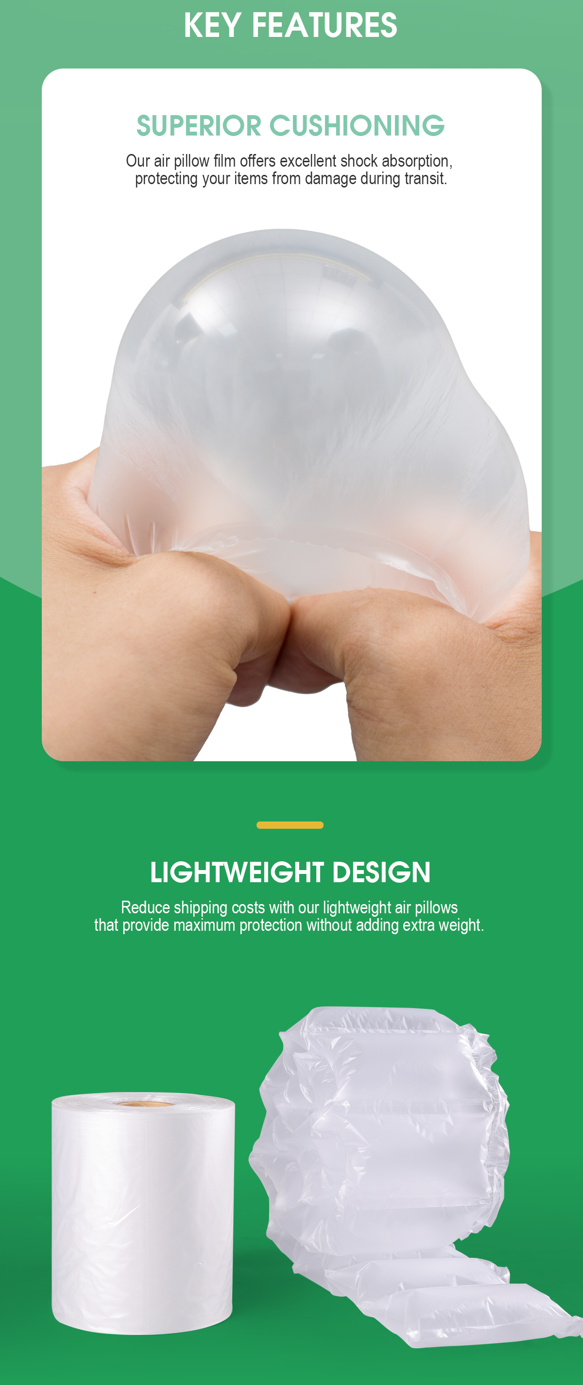 Cost-effective: Compared to traditional packaging materials like foam or bubble wrap, air pillow packaging film can be a cost-effective solution for businesses, reducing material costs and labor associated with packaging.