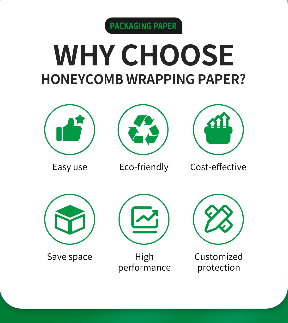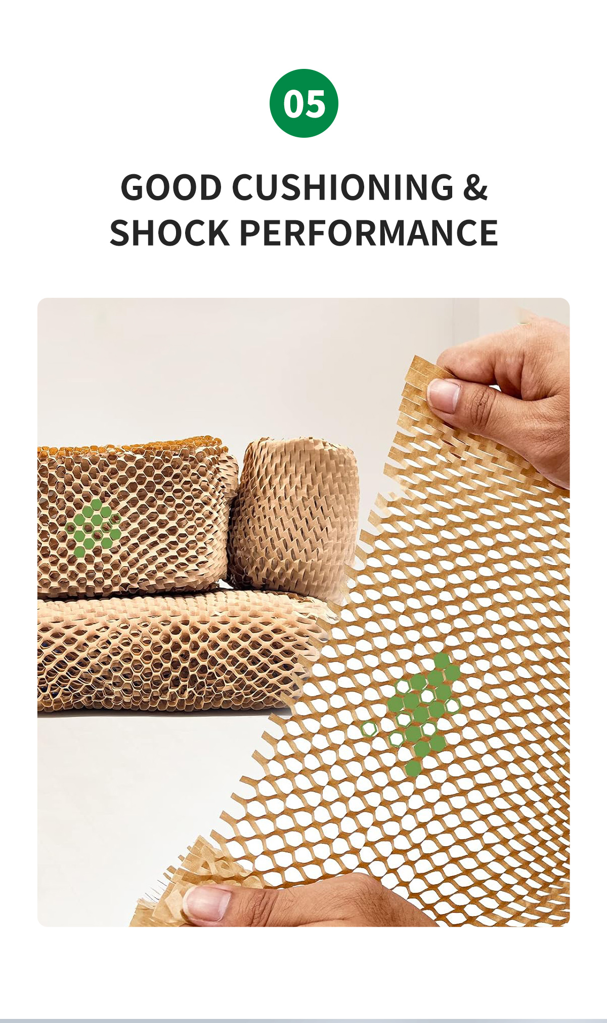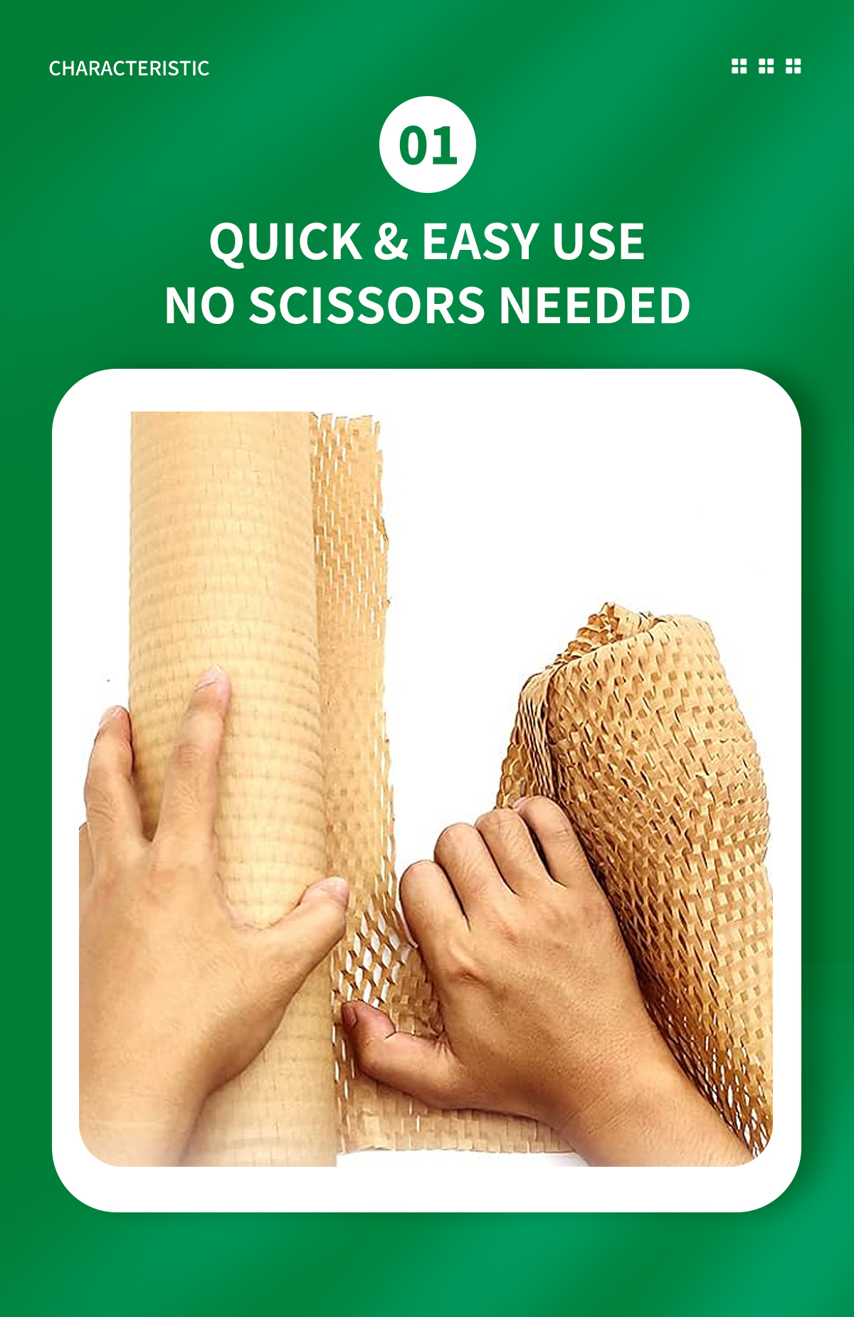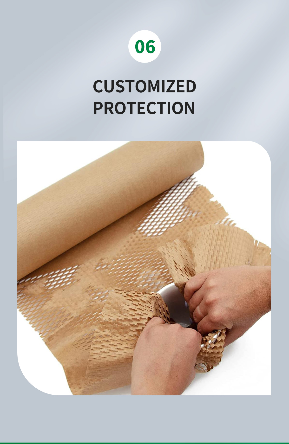 Honeycomb Packing paper, Honeycomb Paper Wrap, Honeycomb Wrap, Kraft Paper Bubble Wrap, Honeycomb Cushioning Honeycomb paper wrap is a combination of a patented die cut Kraft paper with a tissue inter leaf paper. The paper dispenser expands the die cut paper to a 3D honeycomb structure providing a unique packaging product while also reducing material handling and taking up less storage space. It provides the most protective, cost effective and sustainable wrapping system for all your shipping needs with the 100% recycled material, completely biodegradable in soil after use .