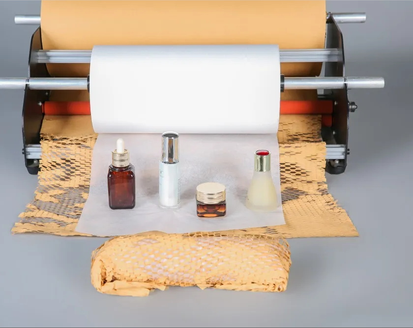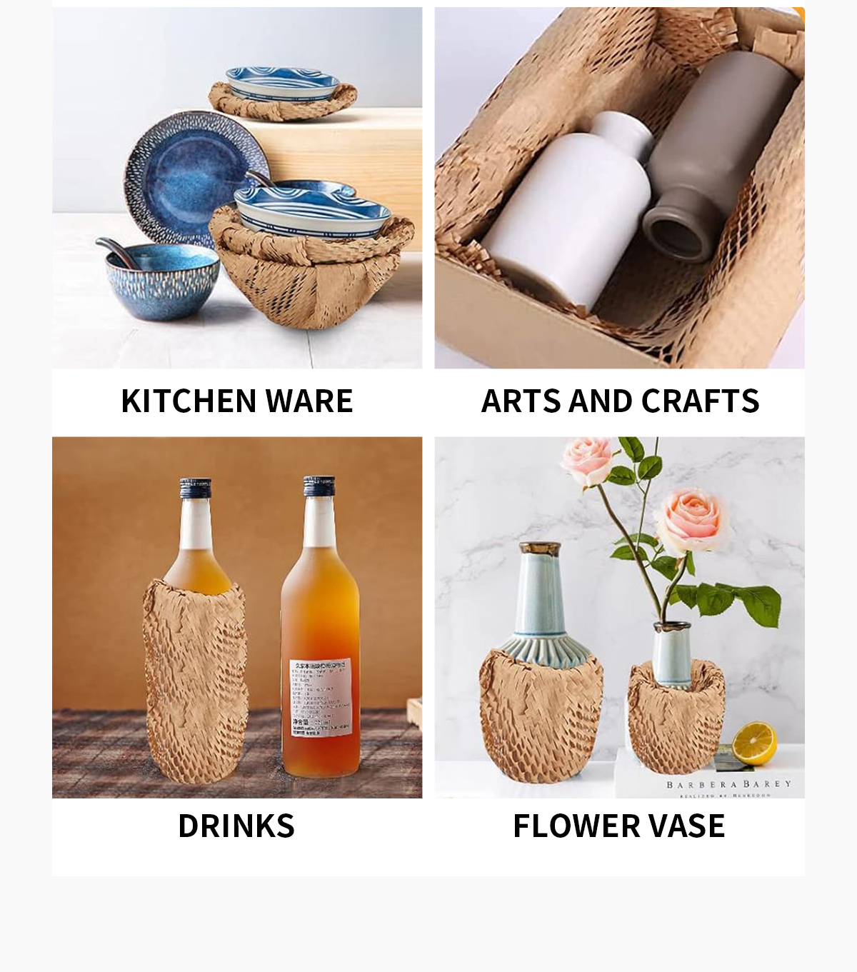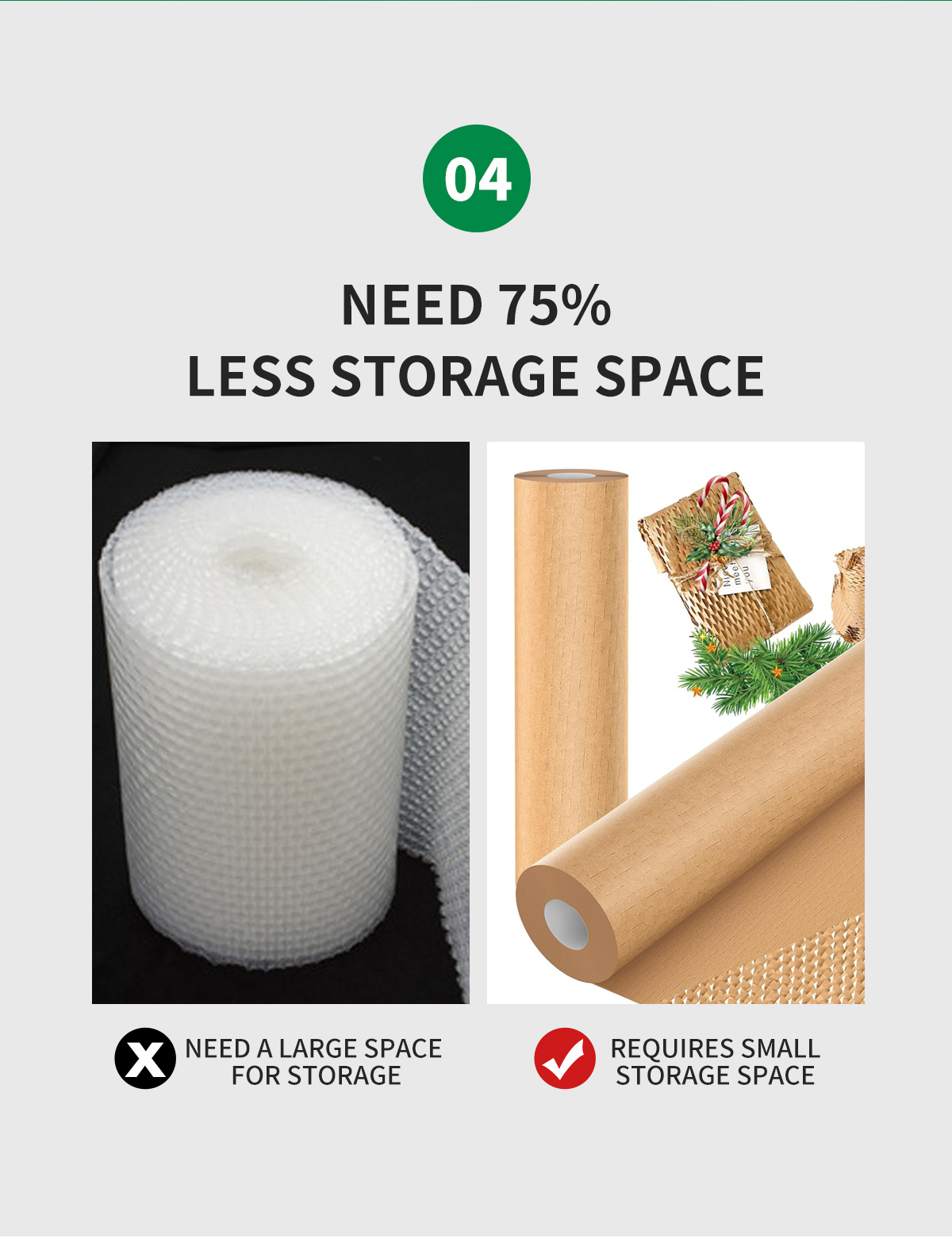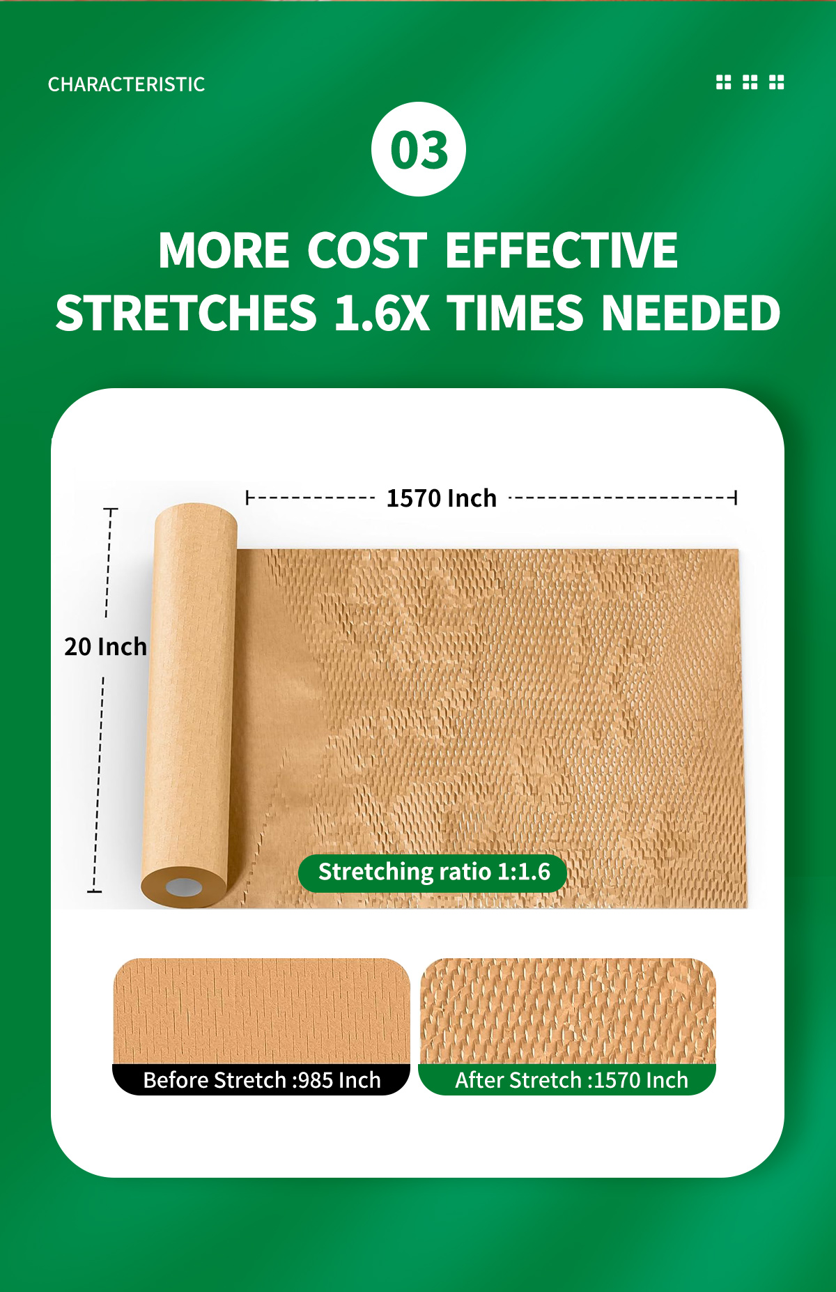 Honeycomb Packing paper, Honeycomb Paper Wrap, Honeycomb Wrap, Kraft Paper Bubble Wrap, Honeycomb Cushioning Honeycomb paper wrap is a combination of a patented die cut Kraft paper with a tissue inter leaf paper. The paper dispenser expands the die cut paper to a 3D honeycomb structure providing a unique packaging product while also reducing material handling and taking up less storage space. It provides the most protective, cost effective and sustainable wrapping system for all your shipping needs with the 100% recycled material, completely biodegradable in soil after use .